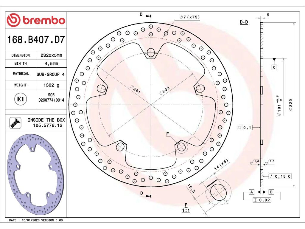 Brembo Serie Oro brzdový kotouč 168B407D7