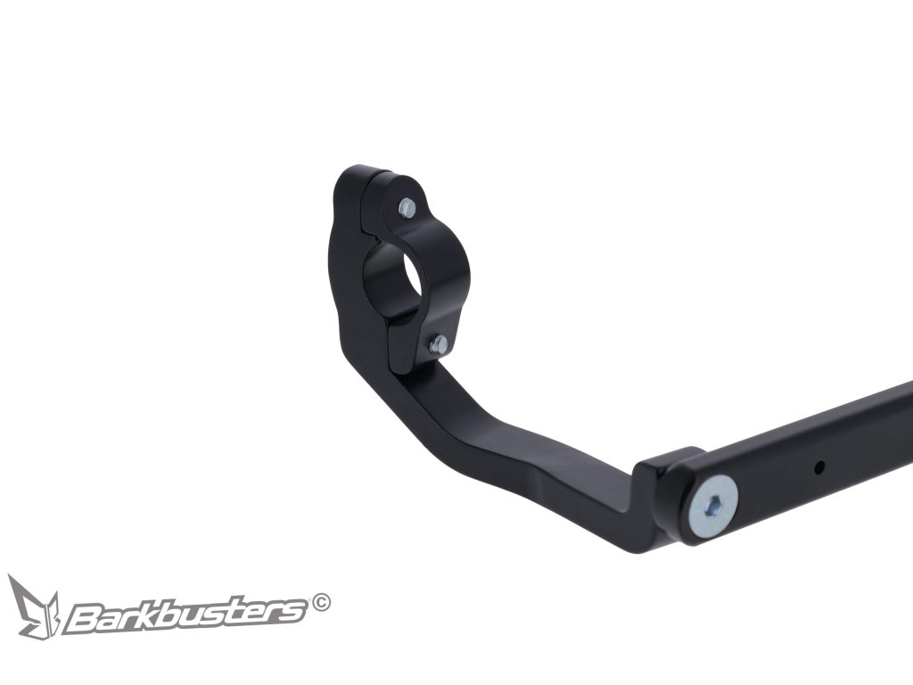 Celohliníkový design s dvěma montážními body zajišťuje maximální pevnost a stabilitu. Tepelně zpracovaná hliníková výztuha poskytuje vysokou odolnost proti nárazům a spolehlivou ochranu v terénu i na silnici. Povrch je opatřen černým práškovým lakem pro dlouhou životnost a odolnost vůči povětrnostním vlivům. Snadná instalace na OEM (originální) řídítka.