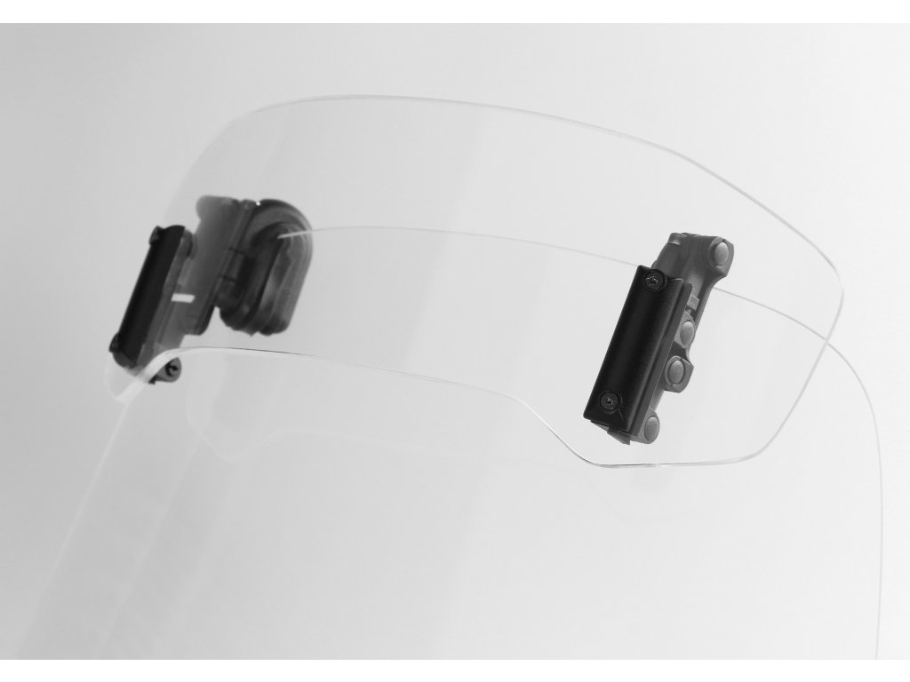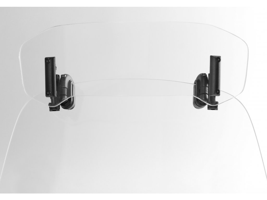 - Deflektor obsahuje klemy pro připevnění bez nutnosti vrtání původního plexi (např. pro testování nebo na dovolenou).