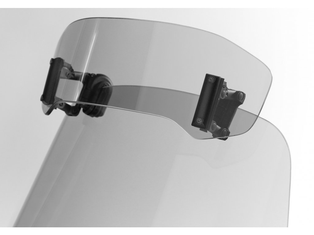 - Deflektor obsahuje klemy pro připevnění bez nutnosti vrtání původního plexi (např. pro testování nebo na dovolenou).
