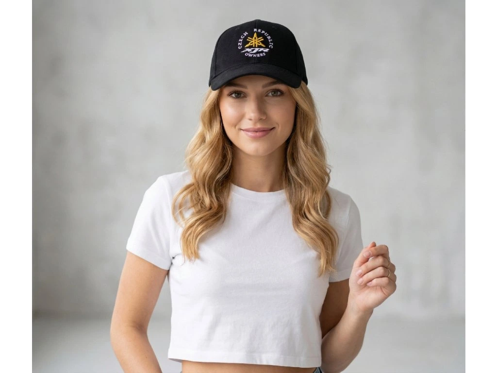 - Vzadu řemínek s přezkou na přizpůsobení velikosti a výšivka "www.yamaha-xjr.cz"