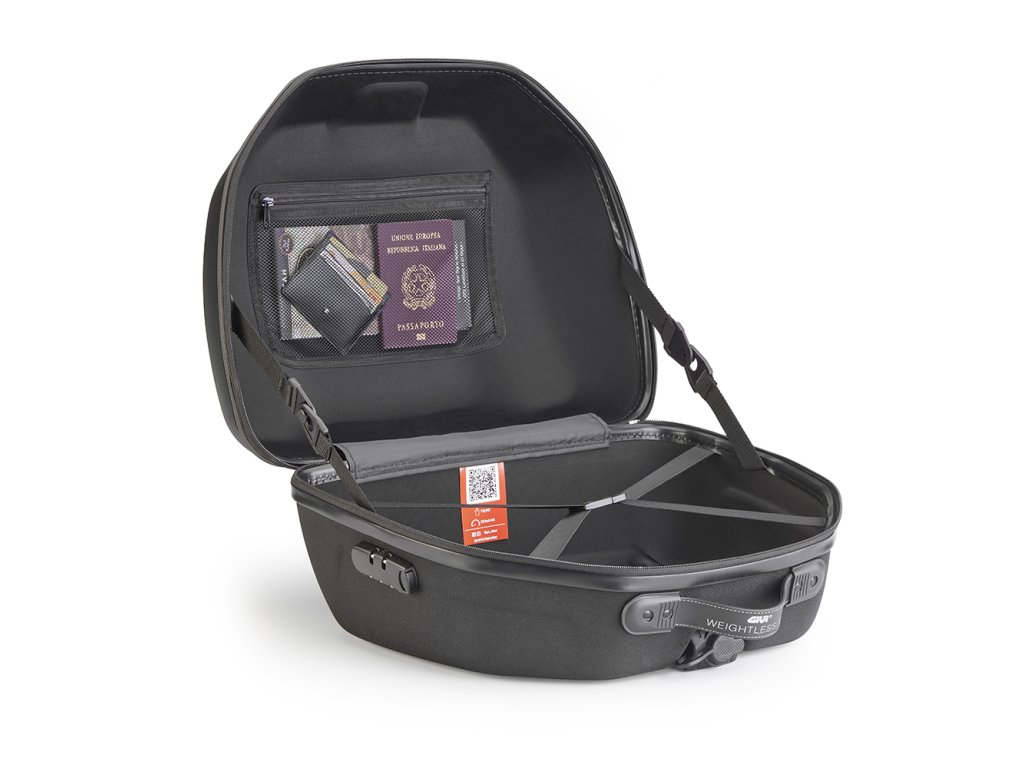 Lehký kompaktní kufr Givi WL 901 s objemem 34 litrů - kufr lze připevnit na nosiče s plotnami typu MONOKEY Řada kufrů typu Monokey (bez plotny). Vyroben z plastu ABS tvářením za tepla. Díky své konstrukci si zachovává tvar, ale je velmi lehký. Kombinovatelný s párem bočních brašen WL 900 Technické informace: Objem: 34 litrů Rozměry ŠxVxH: 468 x 293 x 386 mm Materiál: ABS plast, diamantová textura / 600D polyester / měkký, hebký interiér O kufru: Kufr na první pohled zaujme - elegantní design Kufr pojme jednu přilbu Stříbrné logo Givi Lehká váha kufru Reflexní prvky Madlo pro snadnější přenášení Vyjímatelný vnitřní vak (voděodolnost IPX5) Uvnitř menší síťovaná kapsa na doklady apod. Hlavní kapsa se zapínáním na zip Kufr se zamyká klíčem k nosiči Zipy kufru lze zamknout vestavěným zámkem PADLOCK • YKK* ZIP (*registrovaná ochranná známka patřící YKK) Mezi standardní technické vychytávky patří vnitřní elastické popruhy, odnímatelná voděodolná vnitřní taška a možnost použití integrovaného kombinačního zámku pro uzavření, přičemž kompaktní rozměry jsou stále dostatečně velké, aby se do ní vešla celoobličejová přilba.Doplňkové parametry
