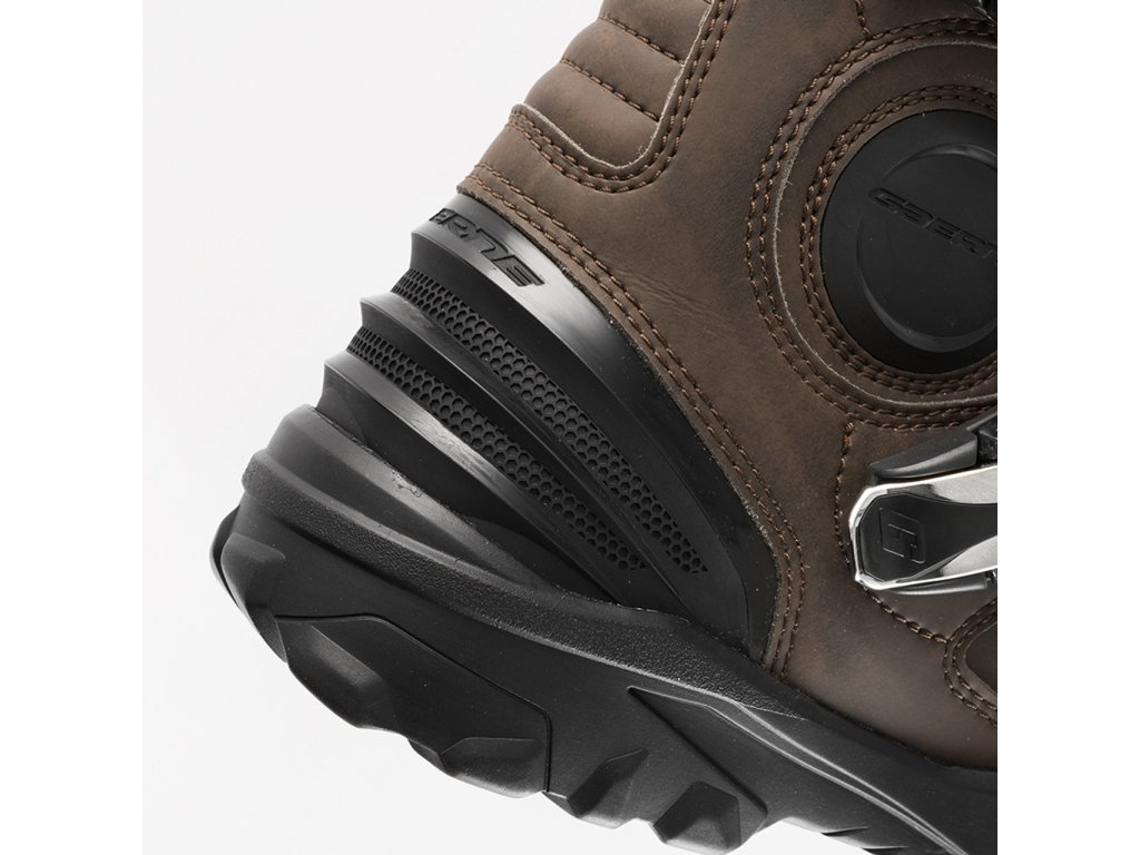 - Perfektní grip: Vnitřní strana boty je opatřena semišovou kůží. Ta je vysoce odolná proti teplu od motoru a zajišťuje, že motorku budete mít v každé situaci pevně „v nohách“.