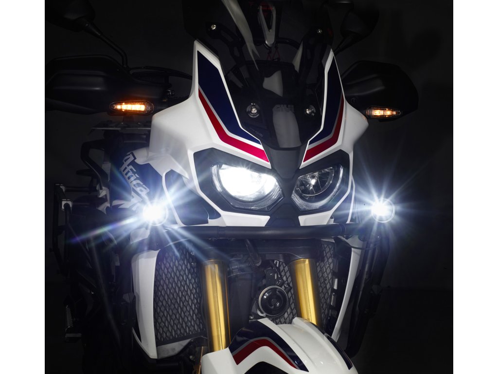 Dvojice univerzálních certifikovaných, s černě lakovaným hliníkovým pouzdrem. Technologie LED, která zaručuje nízkou spotřebu energie, díky čemuž jsou S322 vhodná pro montáž i na motocykly s malými motory, bez rizika vybití baterie. Snadno se připevňuje ke všem padacím rámům s průměrem trubky mezi 21 mm a 25 mm. Dodáváno s pojistkou a kabely pro přímé připojení k baterii a s vodotěsným spínačem pro montáž na řídítka. Dodáváno také s třetím kabelem pro připojení k zámku zapalování motocyklu.