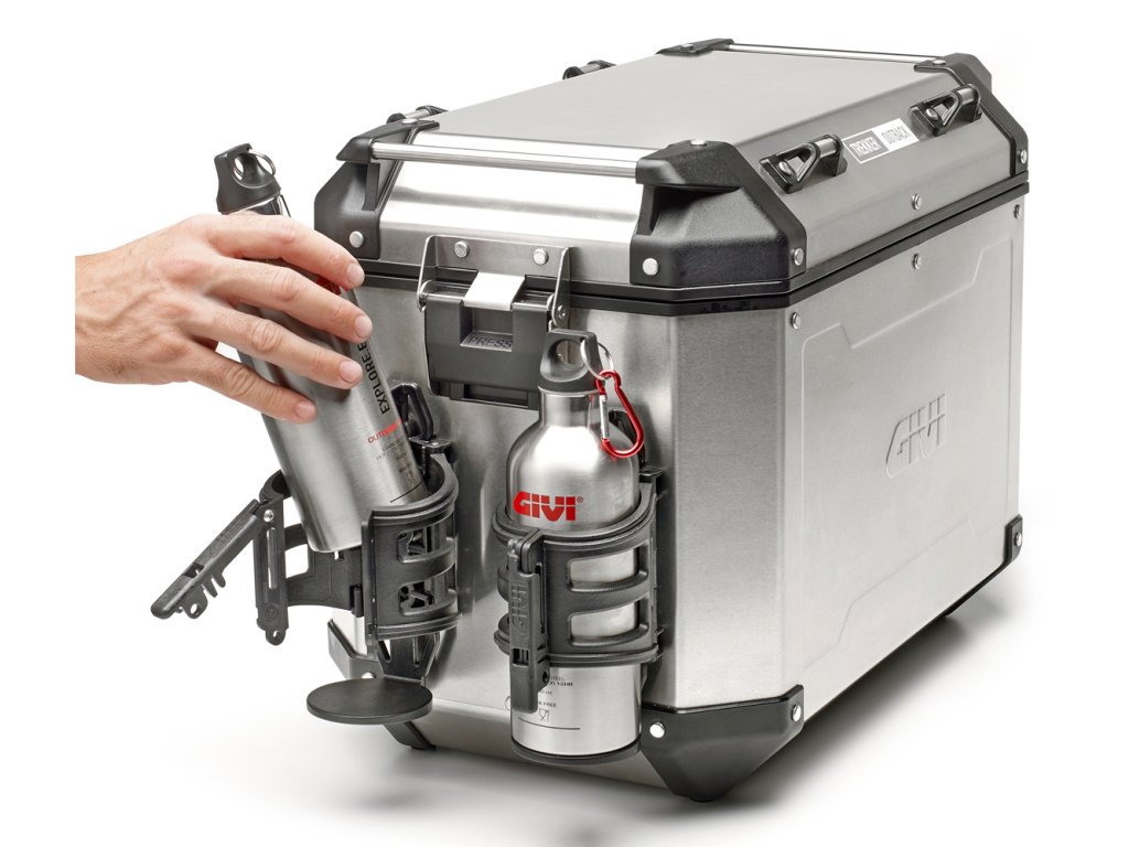 - Možnost upevnění na hliníkové kufry GIVI nebo na trubky o průměru mezi 21 a 25 mm (padací rámy)