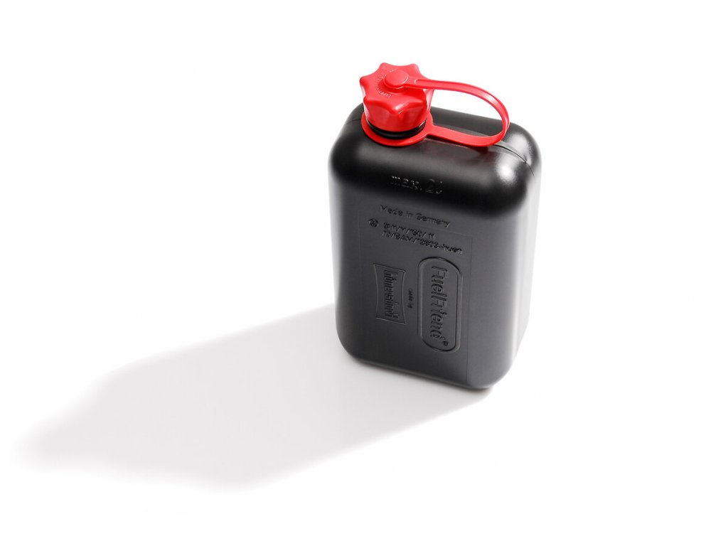 - Černý kanystr se šroubovacím uzávěrem a plnicí trubicí