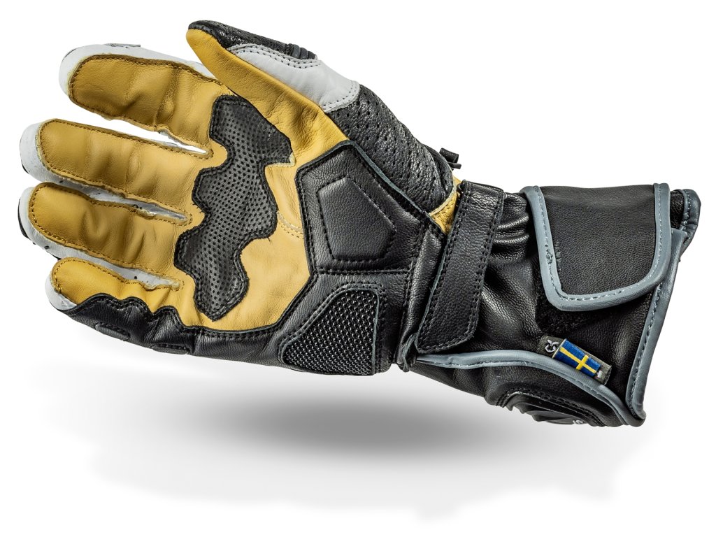 Díky různým technologiím a vysoce kvalitním materiálům vás rukavice Bergby od značky Lindstrands udrží během vašich jízd v pohodě. Kombinace kozí a klokaní kůže vyztužené aramidovým vláknem v dlani zvyšují jejich odolnost. Materiál SuperFabric® v dlani boduje vlastnostmi, jako je odolnost proti oděru, odolnost proti skvrnám, snížená hmotnost a rychlé schnutí. Kromě toho chrániče kloubů a zápěstí úrovně 1 a výztuhy HI-ART® v oblasti dlaně zvyšují vaši bezpečnost na cestách.