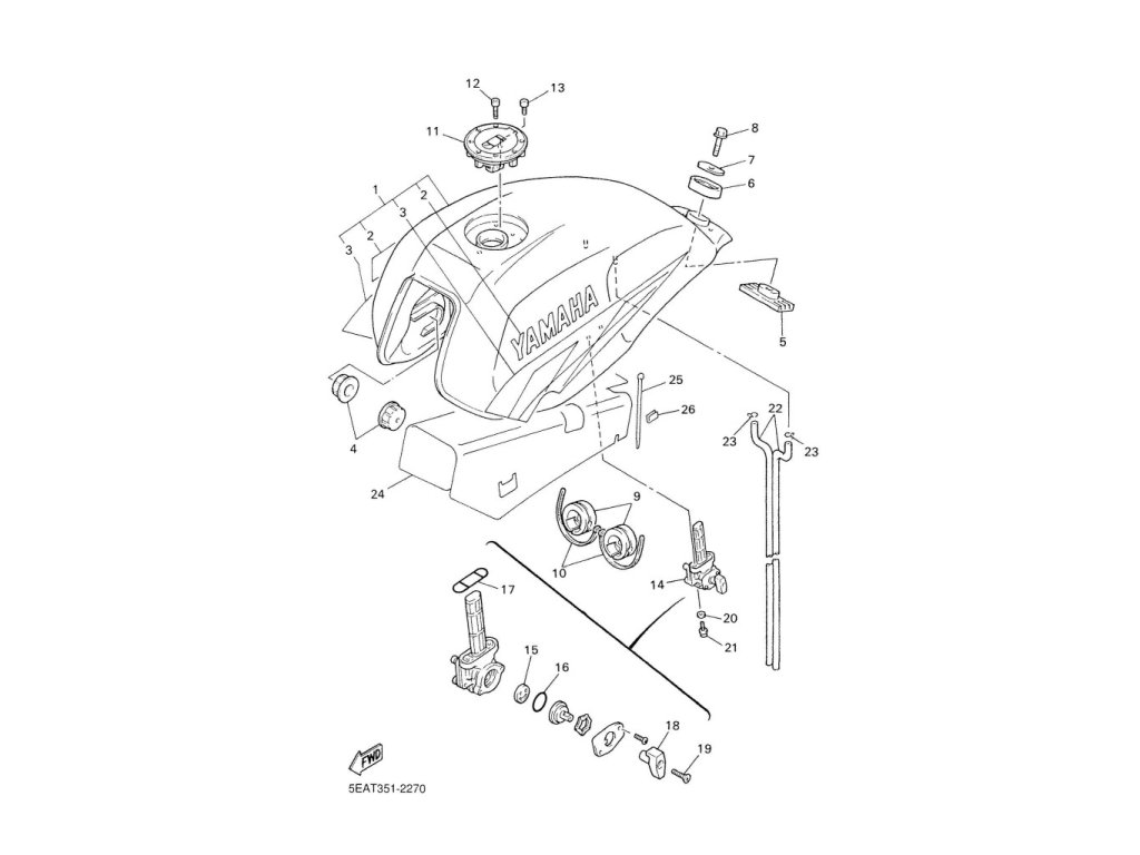 Samolepka "YAMAHA" na levou i pravou stranu nádrže, originální díl Yamaha.