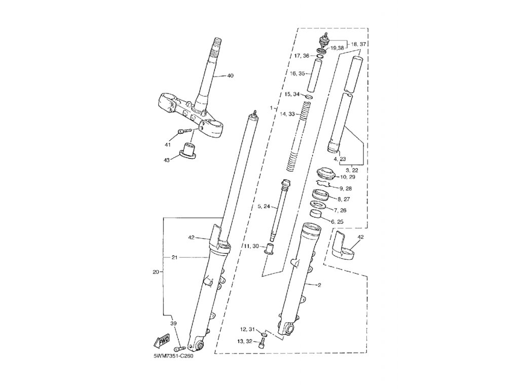 Trubka přední vidlice - Originální náhradní díl Yamaha