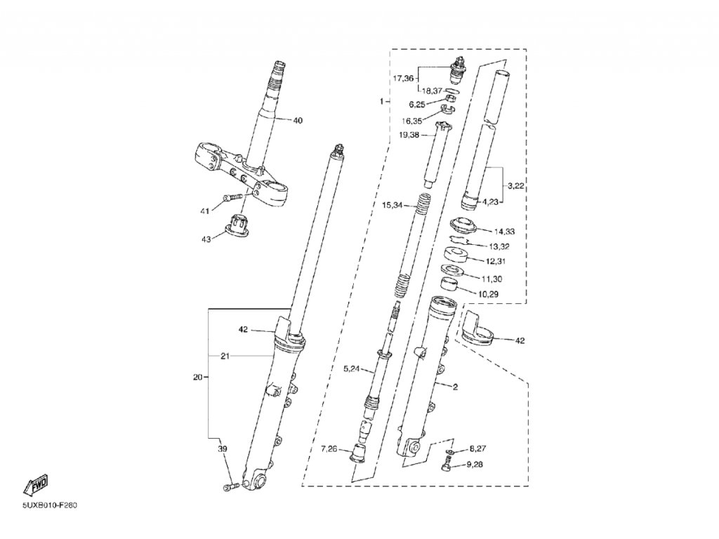 Trubka přední vidlice - Originální náhradní díl Yamaha