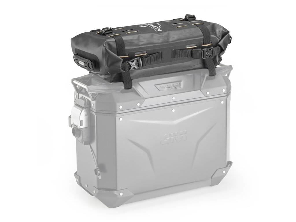 GRT724B je brašna navržená tak, aby se dokonale přizpůsobila různým cestovním situacím. Je praktická a snadno ovladatelná díky ergonomickým rukojetím a oboustrannému rolovacímu uzávěru, který umožňuje snadný přístup k obsahu, aniž byste museli brašnu sundávat z motocyklu.