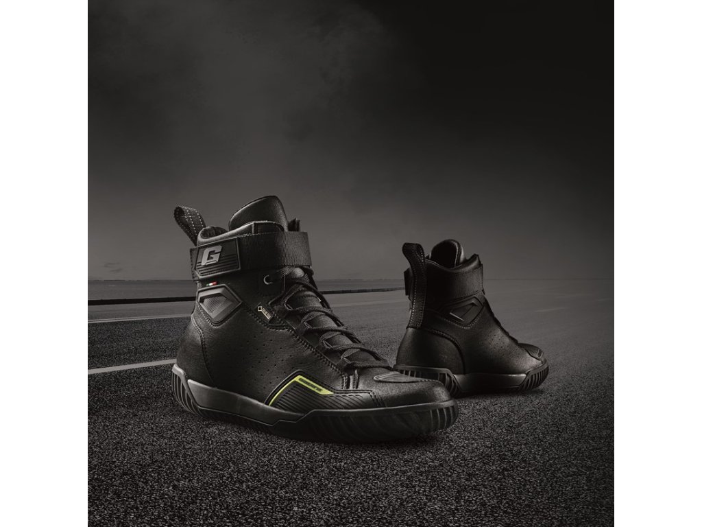 G.Rocket byly navržen pro sportovní jízdu, ale jsou pohodlné i mimo motocykl. Svršek z mikrovlákna, vysoce odolný proti opotřebení. Boční perforace větracího otvoru pro zlepšení vnitřní ventilace a pohodlí. Obsahuje silné ochranné prvky, jako je vyztužení malleolu, řadicí podložka a ochrana paty. Zapínání je rychlé a funkční díky smíšenému systému tkaniček a suchého zipu, obohaceném o mikro vstřikovanou vložku pro usnadnění uchopení. Exkluzivní směsová pryžová podešev je integrována do svršku a nabízí maximální přilnavost a odolnost proti opotřebení. Vnitřní prodyšná a antibakteriální membrána